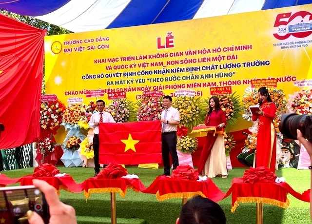 Sáng nay 28.4, Trường CĐ Đại Việt Sài Gòn đã tổ chức lễ khai mạc triển lãm "Không gian Văn hóa Hồ Chí Minh" và triển lãm "Quốc kỳ Việt Nam- Non sông liền một dải", nhằmtôn vinh lácờ Tổ quốcvà giá trị lịch sử dân tộc,đồng thời ra mắt cuốn kỷ yếu "Theo bước chân anh hùng".