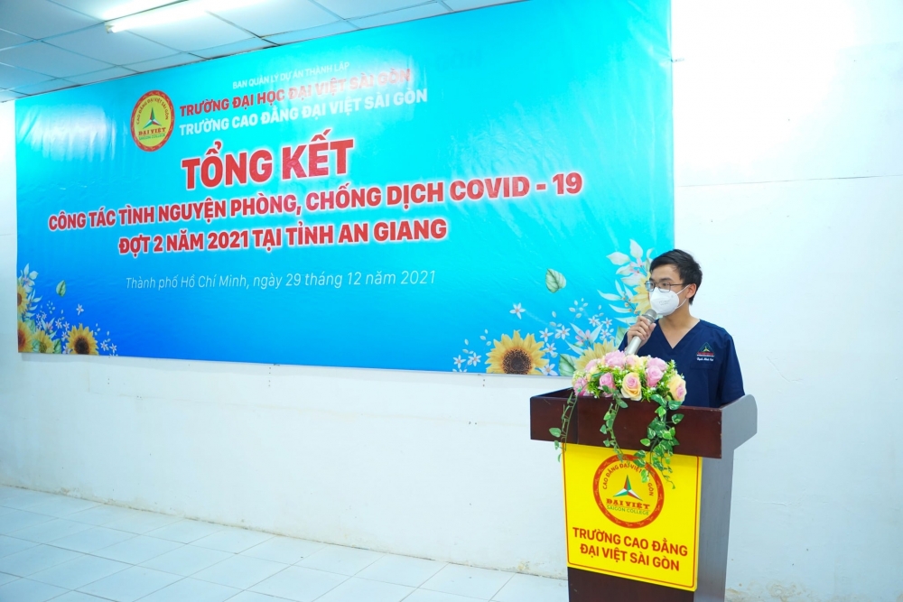 ?Trước đó, Trường Cao đẳng Đại Việt Sài Gòn nhận được công văn Số 3985/SYT-TCCB ngày 15/11/2021 của Giám đốc Sở Y tế tỉnh An Giang về việc đề xuất hỗ trợ nguồn lực phục vụ công tác phòng, chống dịch Covid-19 tại tỉnh. Ngay lập tức, Nhà trường phát động chiến dịch tình nguyện tham gia công tác phòng, chống dịch Covid-19 Đợt 2 và được nhiều chiến sĩ đăng ký tham gia đội tình nguyện là giảng viên, sinh viên khối ngành Y Dược.