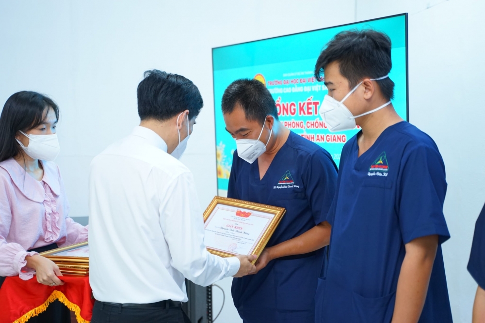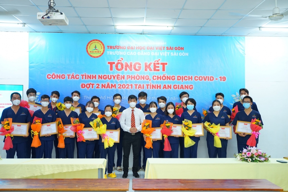 ?Trước đó ngày 09/12, UBND tỉnh An Giang đã tổ chức buổi lễ tuyên dương, động viên lực lượng các chiến sỹ, tình nguyện viên đã tham gia công tác phòng, chống dịch Covid-19 tại tỉnh An Giang. Các tình nguyện viên của Trường Cao đẳng Đại Việt Sài Gòn đã vinh dự nhận được Bằng khen của UBND tỉnh An Giang vì đã có thành tích xuất sắc trong công tác phòng chống dịch Covid-19 tại tỉnh An Giang.