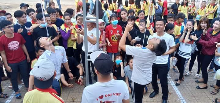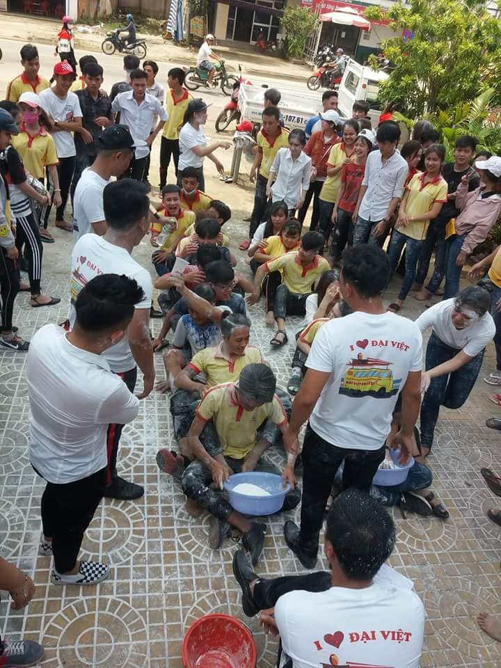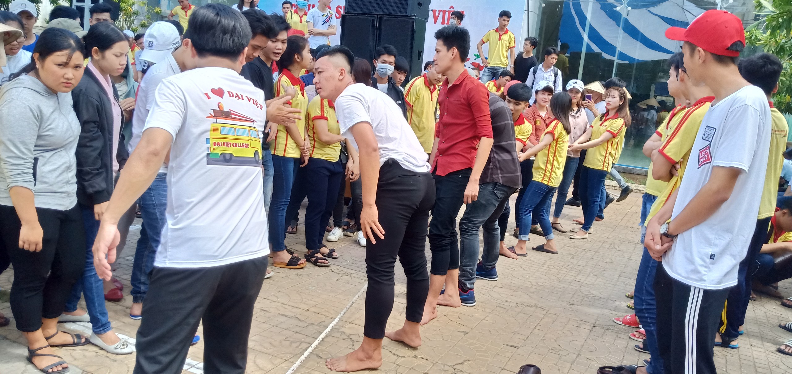 Đầu tiên là các trò chơi dân gian bao gồm các trò chơi như: kéo co, ăn trái cây 1 chân và chuyền bột.