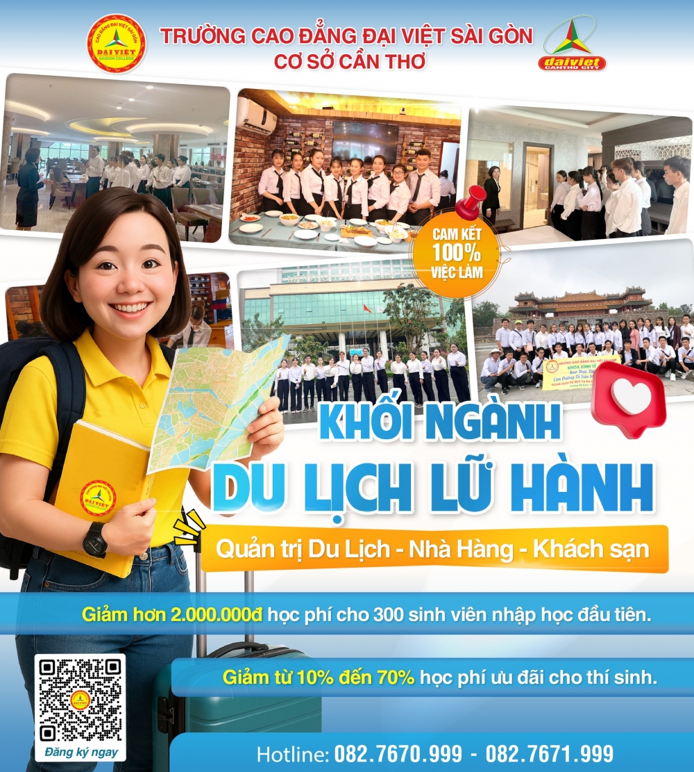 Hãy chọn ngay khối ngành Du lịch – Lữ hành tại Đại Việt Cần Thơ – Nơi khởi đầu sự nghiệp vững chắc!