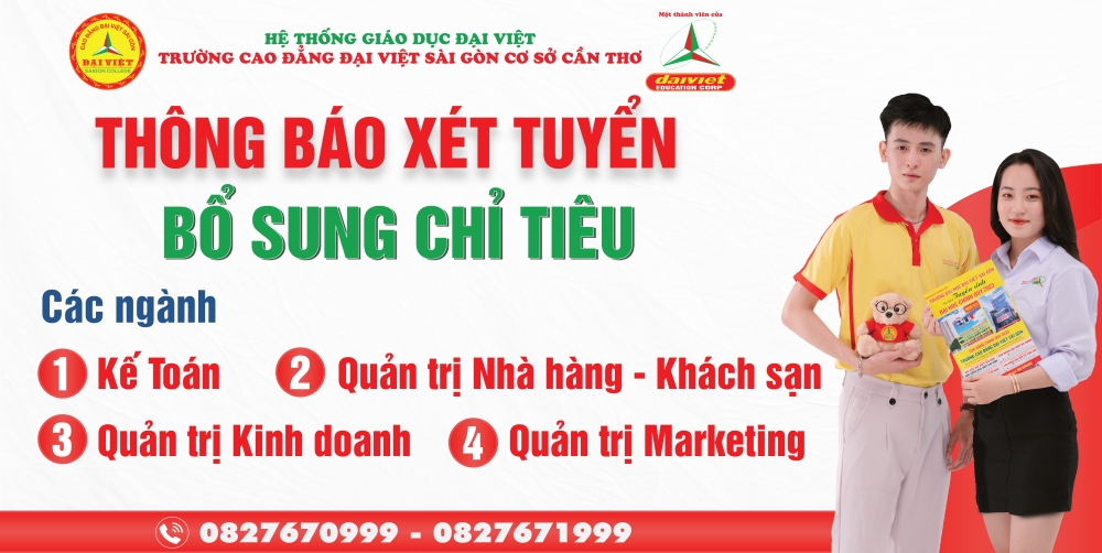 ĐẠI VIỆT CẦN THƠ THÔNG BÁO XÉT TUYỂN CHỈ TIÊU BỔ SUNG KHỐI NGÀNH KINH TẾ - DU LỊCH HỆ CAO ĐẲNG CHÍNH QUY