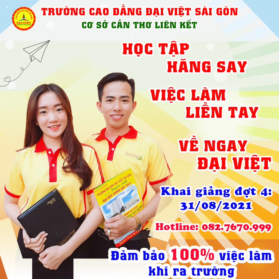 Từ các kế hoạch đi kèm với các mục kiêu rõ ràng nói trên. Trường Cao Đẳng Đại Việt Sài Gòn cơ sở Cần Thơ liên kết luôn tự hào là nơi học tập lý tưởng đối với các bạn sinh viên có mong muốn tìm kiếm cho mình công việc phù hợp khi tốt nghiệp .