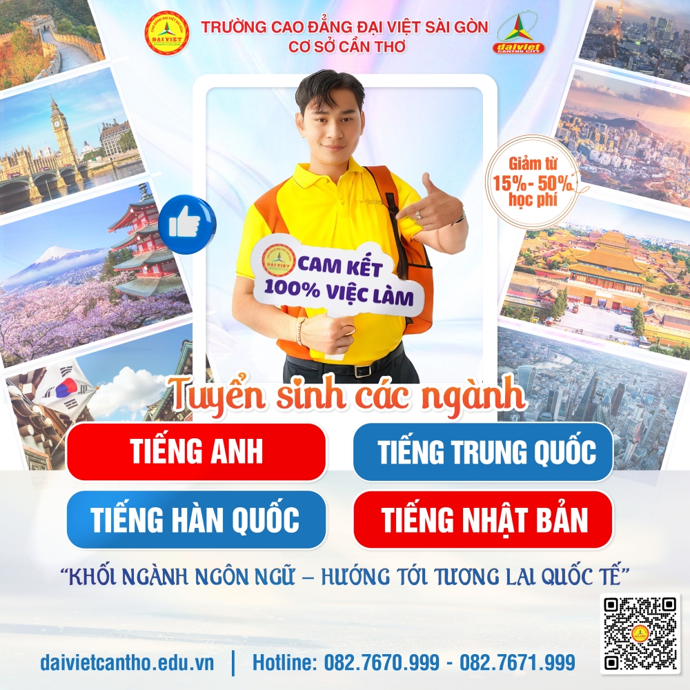 Học ngôn ngữ – Mở rộng cơ hội nghề nghiệp – Hội nhập quốc tế. Đừng ngần ngại – hãy khám phá các ngành của Khoa ngôn ngữ tại Trường Cao đẳng Đại Việt Sài Gòn cơ sở Cần Thơ: