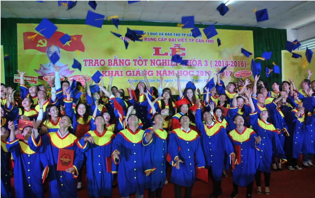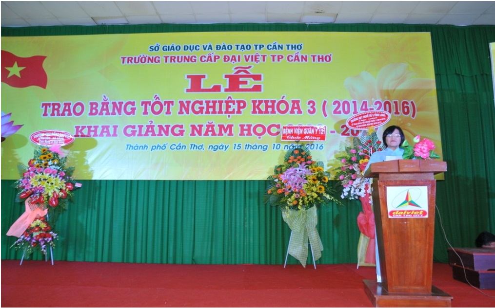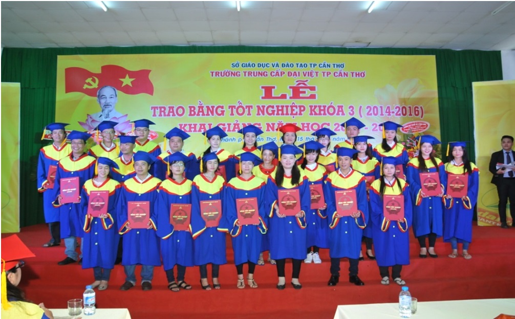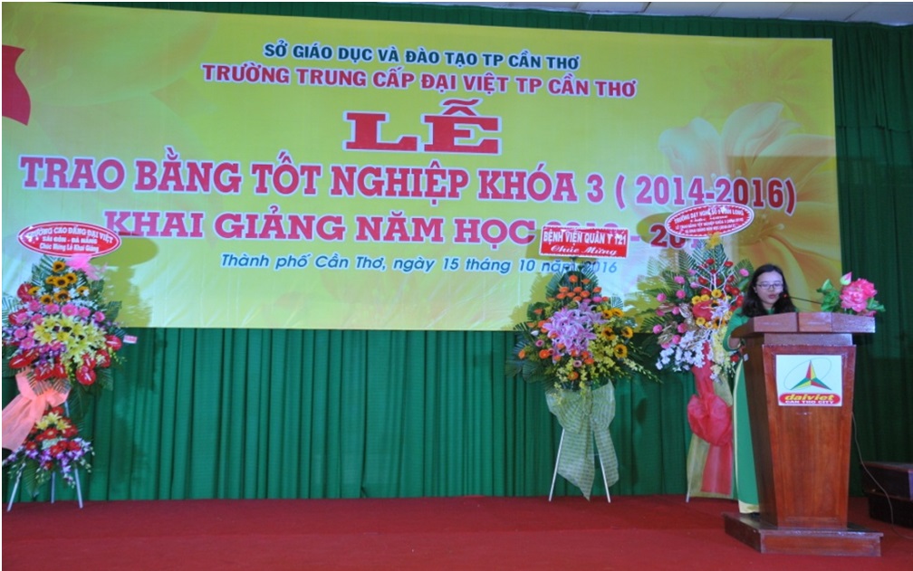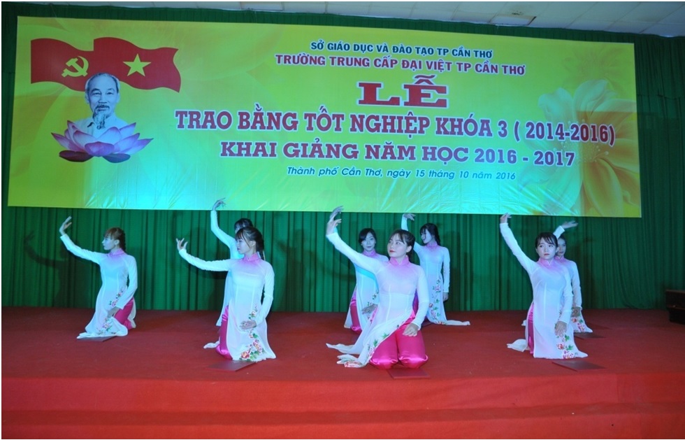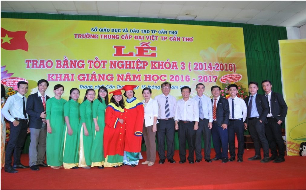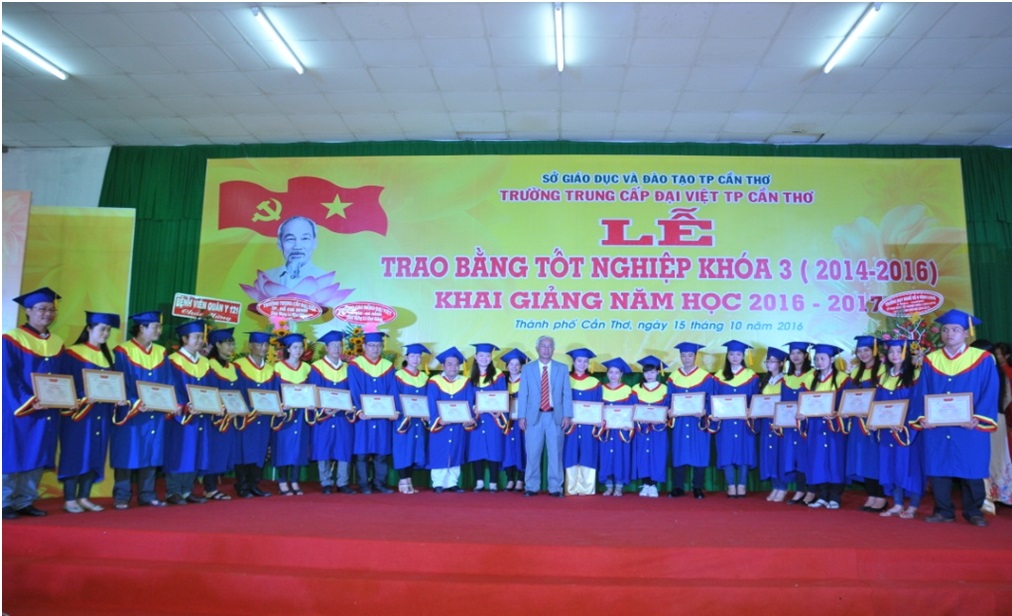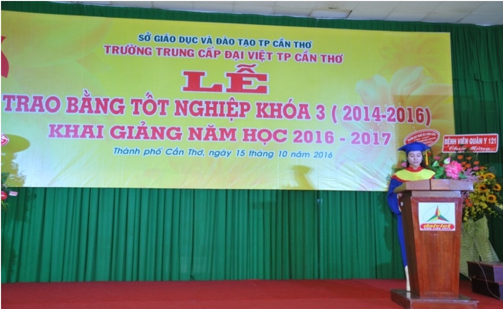 Hòa chung không khí vui tươi, phấn khởi của các trường trong cả nước thi đua lập thành tích chào mừng năm học mới. Sáng nay, ngày 15 tháng 10 năm 2016 Trường Trung cấp Đại Việt TP Cần Thơ đã long trọng tổ chức Lễ trao bằng tốt nghiệp cho HSSV khóa III (2014 – 2016) và khai giảng năm học mới 2016 – 2017 (khóa V). Với sự có mặt của đông đủ quí vị khách quí và hơn 100 phụ huynh trong niềm vui chung chúc mừng thành quả học tập của các em HSSV.