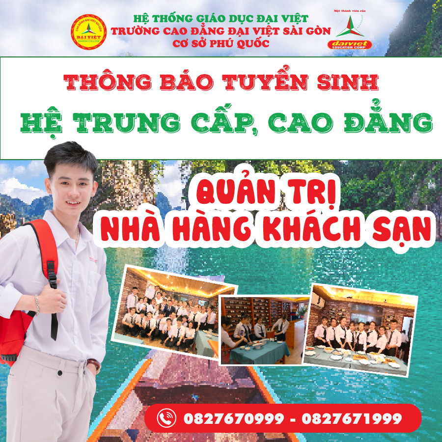Trường Đại Việt Cần Thơ thông báo tuyển sinh hệ trung cấp, cao đẳng ngành Quản trị Nhà hàng - Khách sạn năm 2023