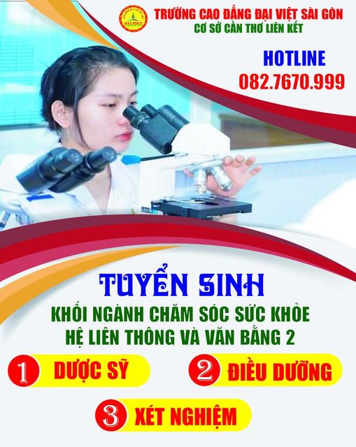 Trường cao đẳng Đại Việt Sài Gòn cơ sở Cần Thơ liên kết - Xét tuyển bổ sung nhóm ngành chăm sóc sức khỏe hệ liên thông và văn bằng 2