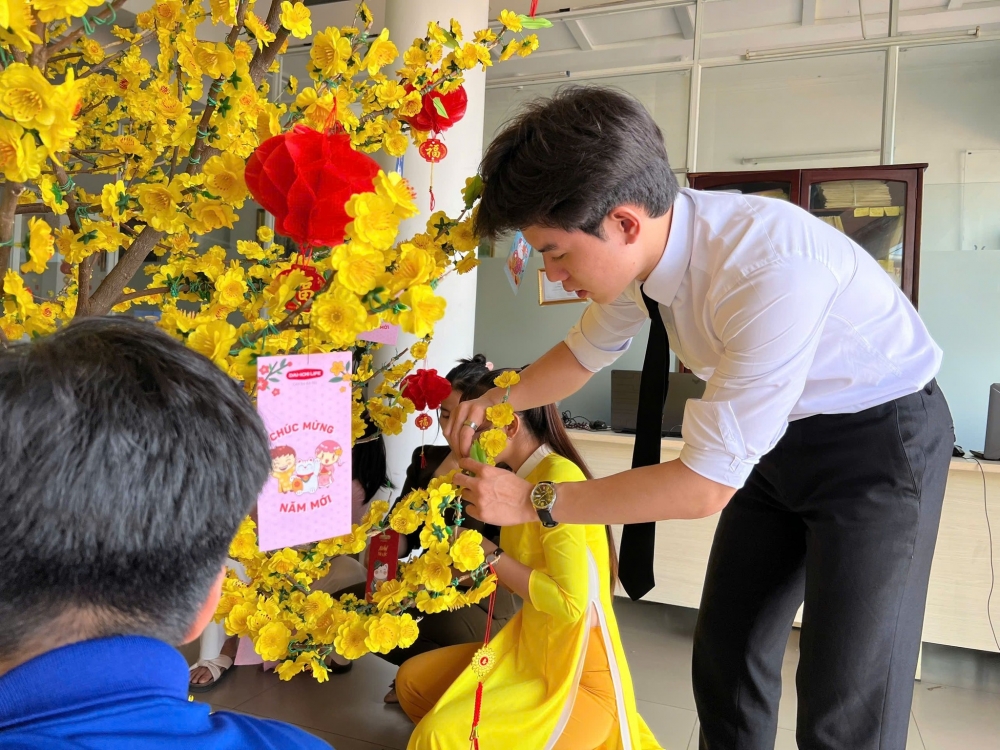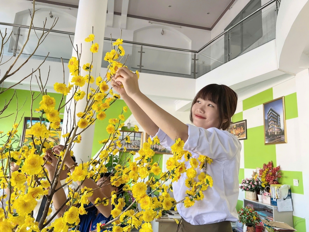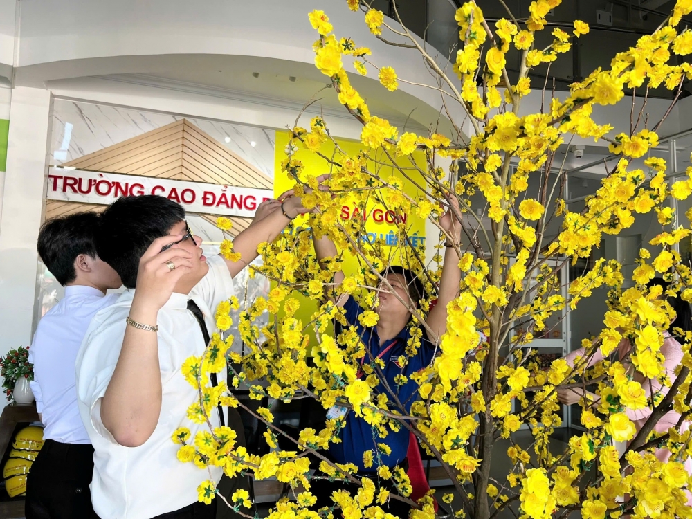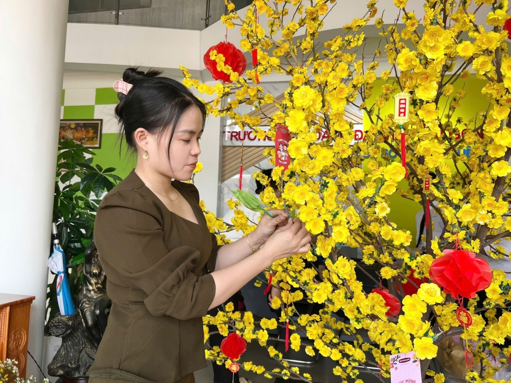Từng bông hoa, từng nhánh mai đều chứa đựng tình cảm và sự sáng tạo của thầy và trò trường Đại Việt Cần Thơ, tạo nên một không gian đầy sắc xuân, ấm áp và gắn kết.
