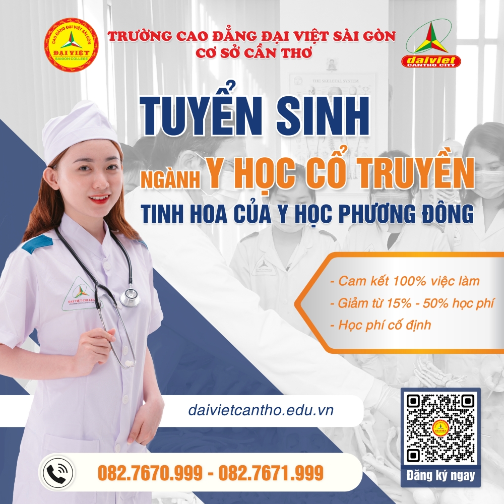 Tại Trường Đại Việt Cần Thơ đang đào tạo và tuyển sinh ngành Y học cổ truyền. Với chương trình học trang bị đầy đủ kiến thức và song song với thực hành. Mang đến cho sinh viên những kiến thức và trải nghiệm tốt nhất giúp bạn vững bước trong tương lai.